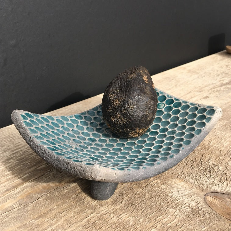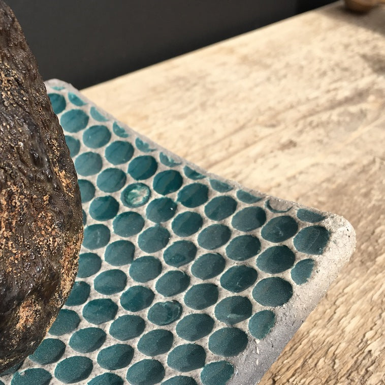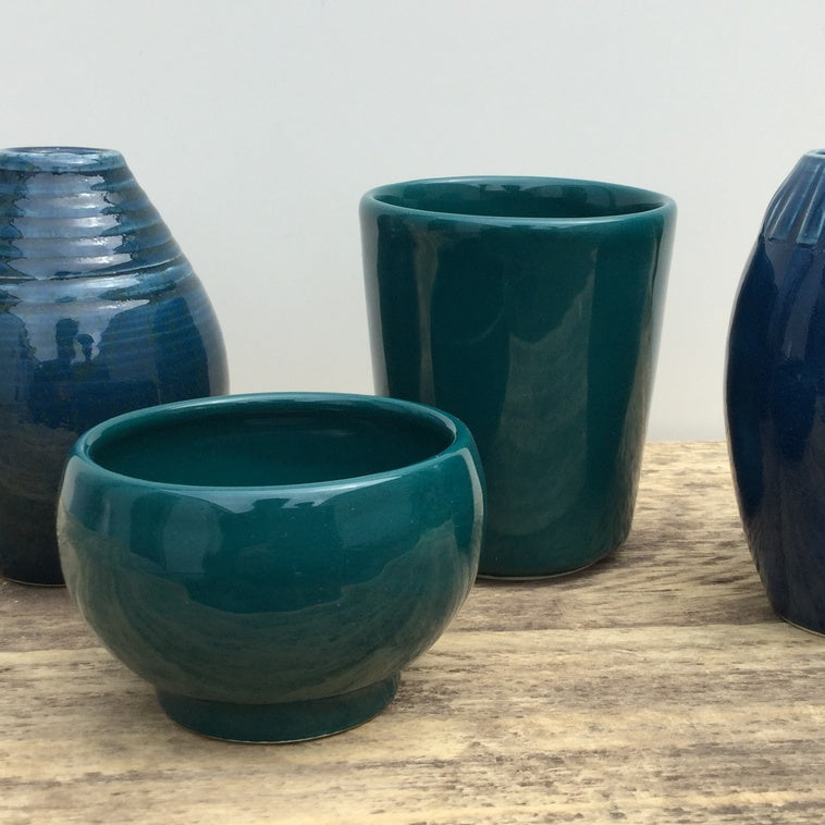 Émail opaque, brillant, bleu-vert intense.