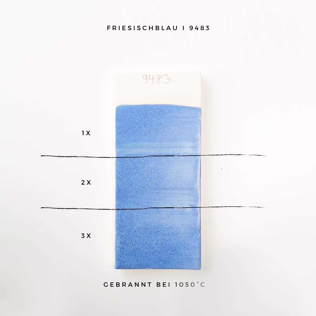 Émail mat, finement moucheté, bleu clair.