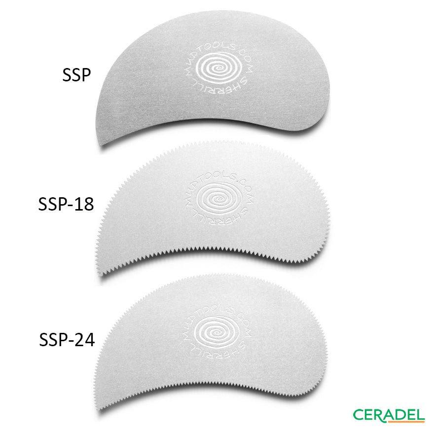 GRATTOIR EN ACIER INOXYDABLE MUDTOOLSCommercialisé en 3 déclinaisonsFabriqué avec une qualité d'acier inox extra, ce grattoir est flexible et courbable.Commercialisé soit avec un bord finement dentelé (SSP18), ou extra-finement dentelé (SSP24), ou un bord plein (SSP).Dimensions : 83mm x 67mmVendu à l'unité