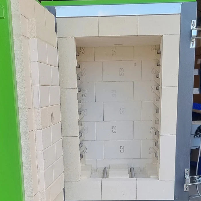 Dans ce cadre, sont installés un panneau de fibre de haute qualité et des briques à faible masse thermique afin de maximiser l'isolation.